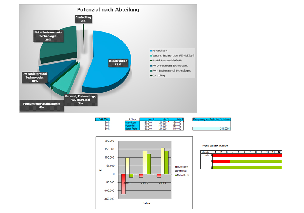 - Verbesserungsmöglichkeiten werden identifiziert, in einem Aktionsplan festgehalten und monetär bewertet, und deren Umsetzung in einer Roadmap zeitlich erfasst