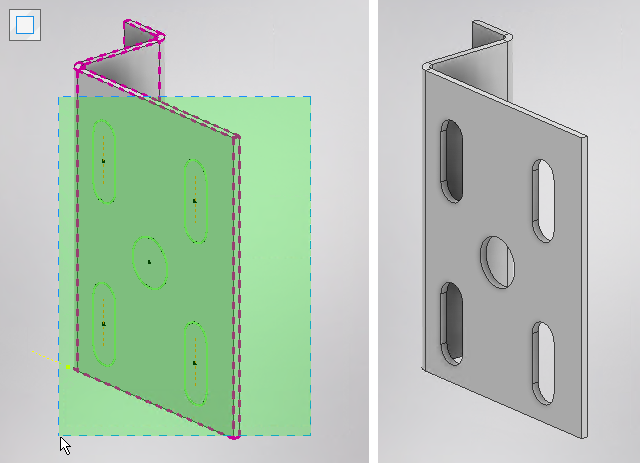 DM: Natürlich, auch hier kommen einige Verbesserungen. Blech-Ausklinkungen lassen sich jetzt ganz schnell mittels Fensterauswahl selektieren – einzelnes Klicken ist nicht mehr nötig. Außerdem können Skizzenbemaßungen jetzt sofort auf die Mitte von Kanten bezogen werden. Supereinfach, schnell, effektiv, genial!
