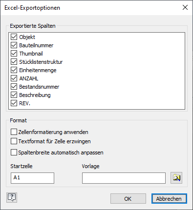 Eine tolle Erweiterung betrifft den Excel-Export der Stücklisten schon aus der Baugruppe heraus. Hier lässt sich jetzt endlich auch eine Stücklistenvorlage auswählen, die zu exportierenden Spalten und die Formatierungen können auswählt werden. Also auch hier kann man sich Zusatzprogrammierungen und Tools sparen.