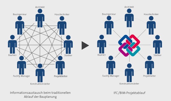 IFC (Industry Foundation Classes) ist das Austauschformat um Modelle zwischen verschiedenen Software-Lösungen intelligent auszutauschen