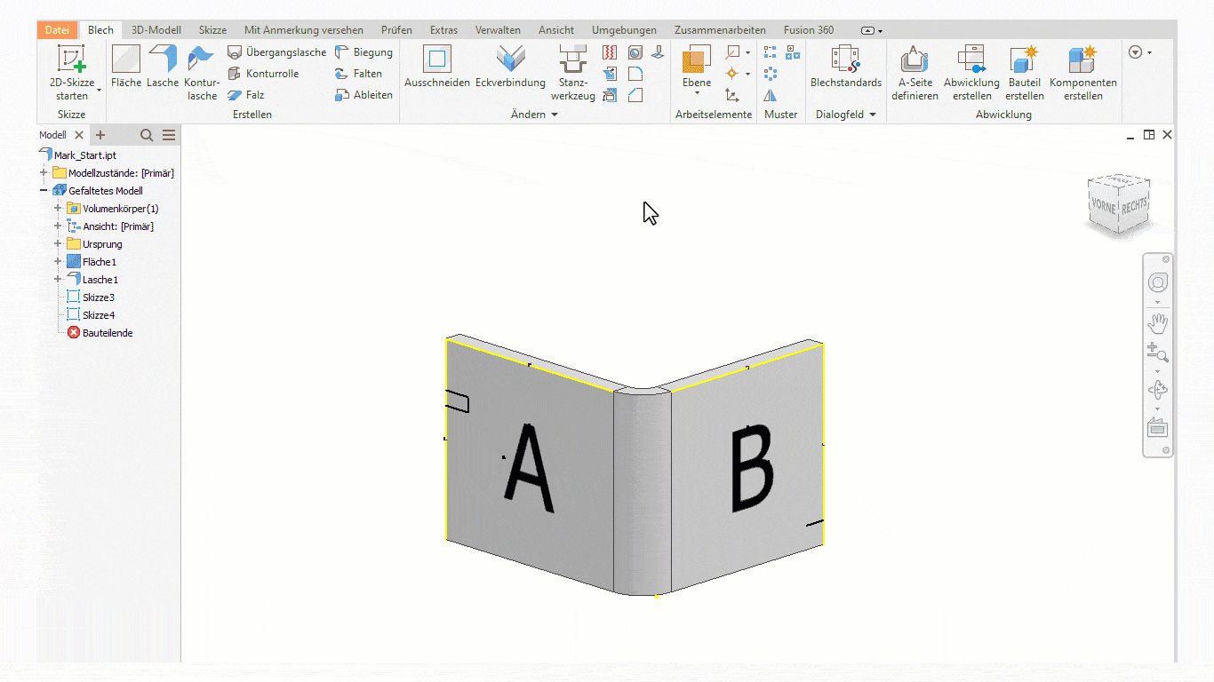 Ganz neu hinzugekommen ist die Funktion "Markieren". Damit können Sie ab jetzt Skizzen oder Text verwenden, um Markierungen hinzuzufügen. Verwenden Sie diese Funktion, um Lasermarkierungen, Ätzungen oder Gravuren darzustellen. Markierungsfunktionen werden in 2D und 3D angezeigt und können im DXF/DWG-Export von Flat Pattern exportiert werden.