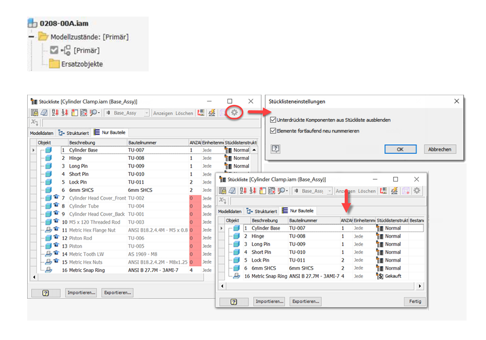 Modellzustände und Stücklisten