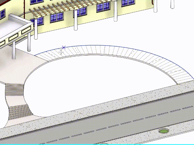 Ein Beispiel hierfür ist die Erstellung perfekt geformter Oberflächen zwischen oder an anderen Modellelementen. Mithilfe von Revit und Environment kann ein Ankerpunkt entlang eines beliebigen Elements im Modell oder einem verknüpften Modell ausgewählt werden. Sie können eine Konturlinie zeichnen, die durch den Punkt verläuft und so glatte, gekrümmte Oberflächen in exakten Höhen entwerfen, die den Projektbeschränkungen entsprechen. In jeder Planungsphase können Konturlinien entfernt oder hinzugefügt oder ihre Position verändert werden.
