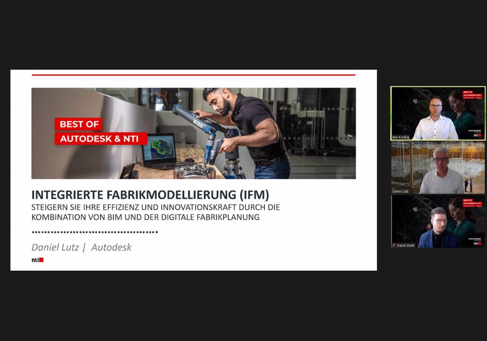 Ein besonderes Highlight unseres Best of Autodesk & NTI Online-Events waren die verschiedenen Referenzberichte. Dabei teilten unsere Referenten ihre Erfahrungen und Erfolgsgeschichten, indem sie aufzeigten, wie sie Autodesk- und NTI-Lösungen erfolgreich in ihre Arbeitsprozesse integriert haben. Es war beeindruckend zu sehen, wie unsere Softwarelösungen in verschiedenen Branchen eingesetzt werden, um die Effizienz zu steigern und innovative Lösungen zu schaffen. Diese Einblicke ermöglichten es den Teilnehmern, von bewährten Praktiken zu lernen.