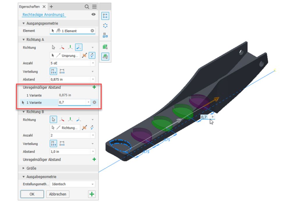 Mit der Neuerung in Inventor 2026 können Sie Anordnungen mit unregelmäßigen Abständen oder Winkeln zwischen den Varianten erstellen - so schnell und einfach wie nie zuvor!
