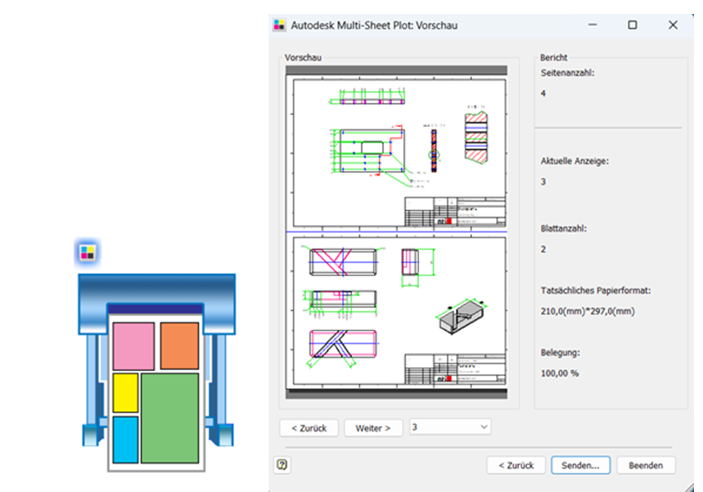 Mit Inventor 2027 steht ihren ein Werkzeug zur Verfügung, mit dem Sie mehrere Zeichnungsblätter unterschiedlicher Größe aus IDW- oder DWG-Dateien drucken können.