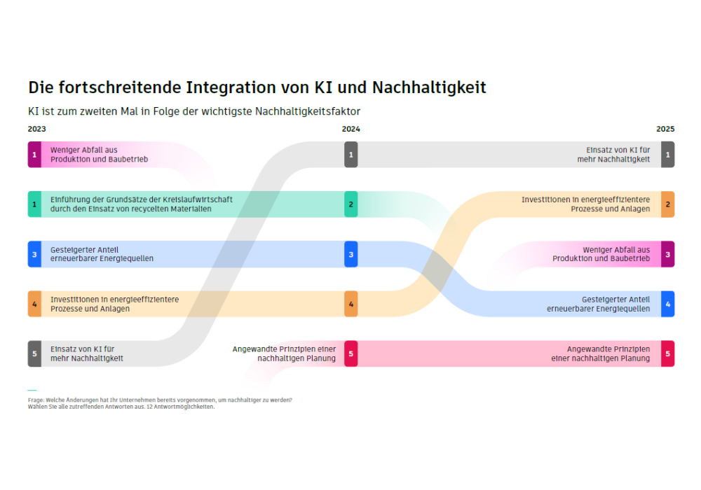 Unternehmen, die fortschrittliche Technologien einsetzen, sind führend und nutzen Nachhaltigkeit als Wettbewerbsvorteil. 39 % der Führungskräfte geben an, dass sie KI einsetzen, um ihr Unternehmen nachhaltiger zu machen. Zum zweiten Mal in Folge ist KI der wichtigste Faktor für Nachhaltigkeit.