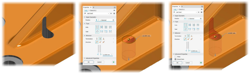 - Klik af i “Extend Start” i “Hole”-funtionen og tryk herefter ”OK”