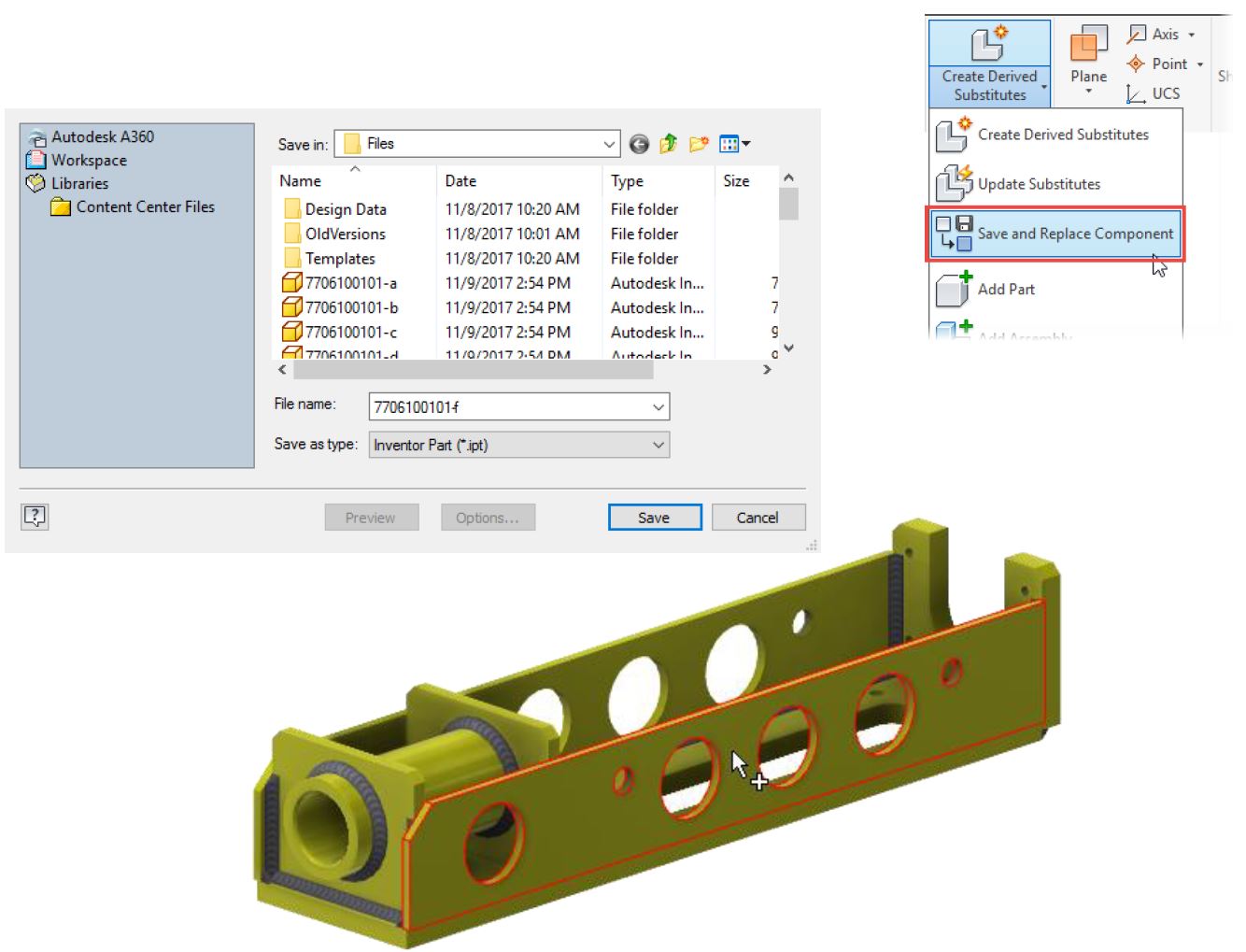 - Benyt stien: Assemble tab > Productivity panel > Save and replace component