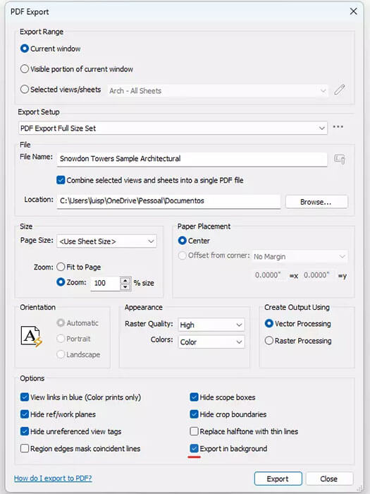 Dette er en interessant ny mulighed i Revit 2025. I PDF Export kan du nu fortsætte med at arbejde, mens en PDF eksporteres i baggrunden. Ikke mere unødvendig ventetid - men derimod tidsbesparelse.