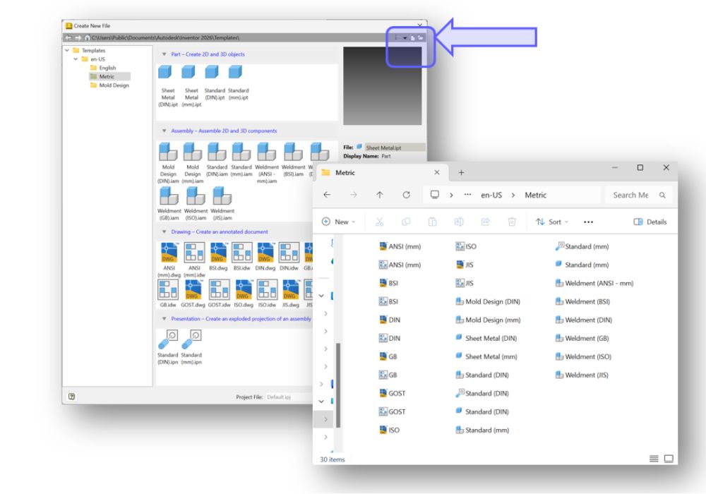 I dialogboksen til oprettelse af nye filer er der nu tilføjet to nye knapper: Copy Path og Open Location. Disse giver dig hurtig og nem adgang til den mappe, hvor dine skabeloner er gemt.