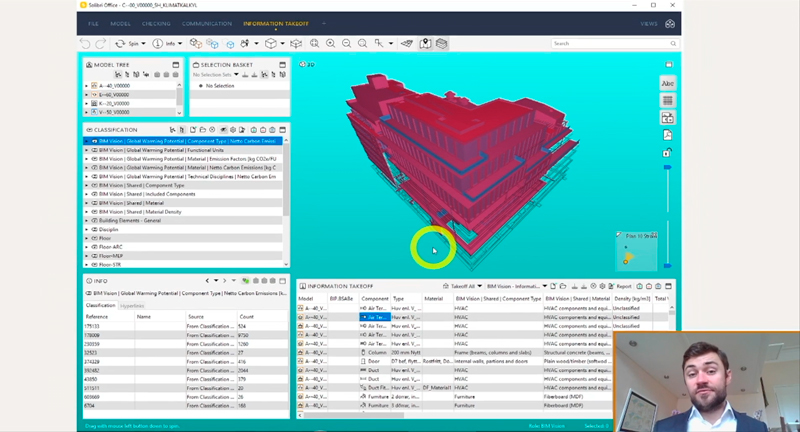 During the presentation, David will show you how can utilize Solibri to visualize carbon and costs in the model as a 3D heatmap in order to understand what parts of the design need to be revised from the sustainability perspective.