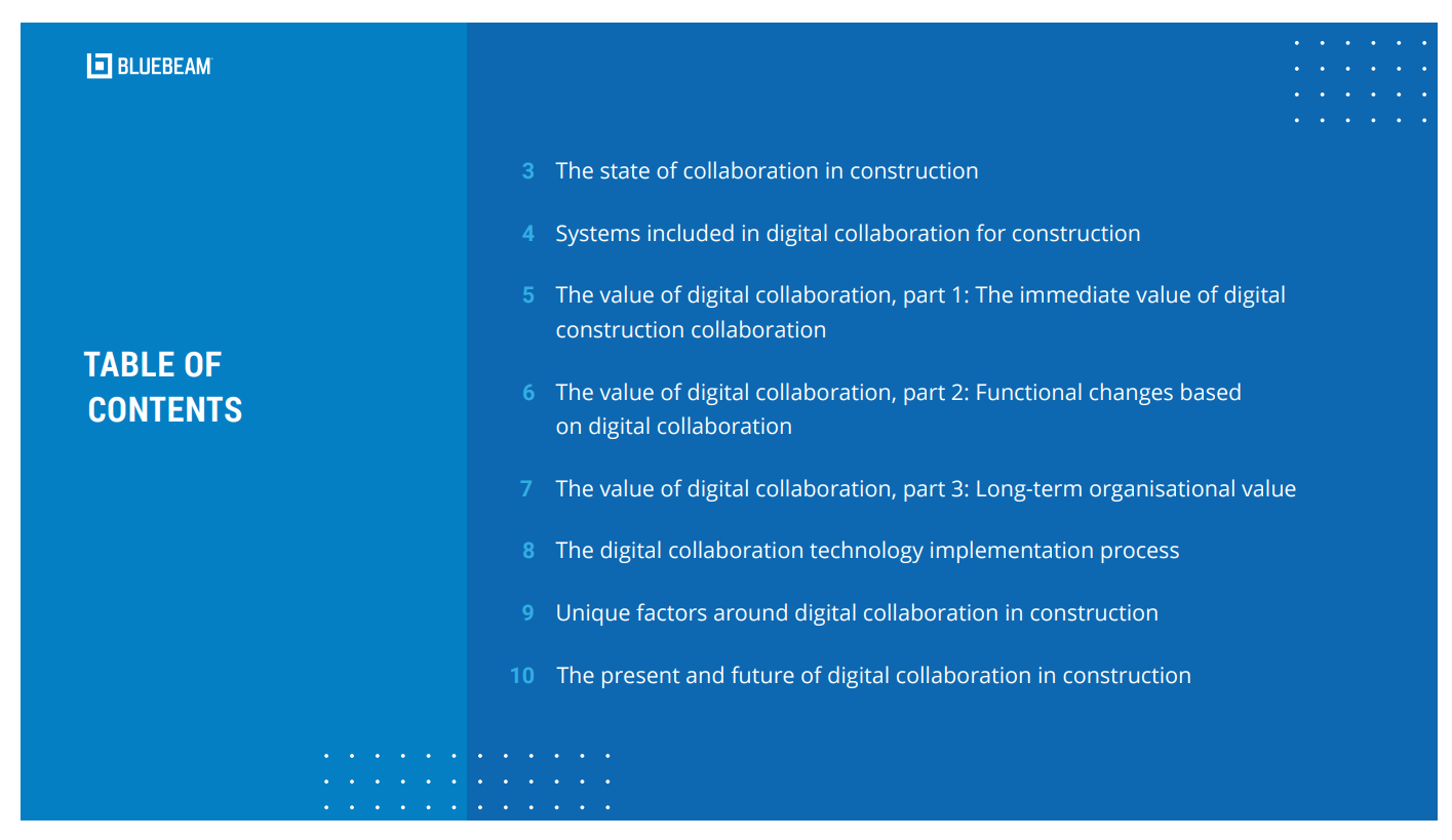 Uanset hvor i byggebranchen du arbejder, kan e-bogen hjælpe dig med at forstå, hvordan digitalt samarbejde kan transformere dit arbejdsliv, så du med selvsikkerhed kan stole på den data, du har til rådighed.