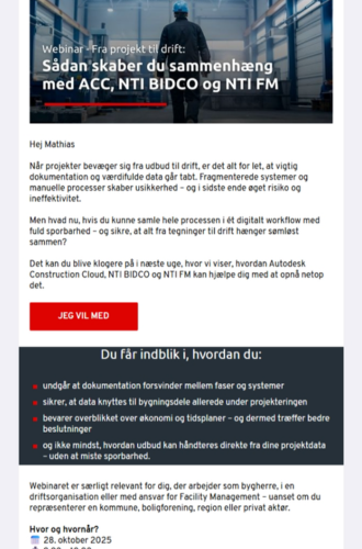 Frekvens: Vi sender invitationer til ERFA-møder, webinarer o.l ca. 4 gange om året.
