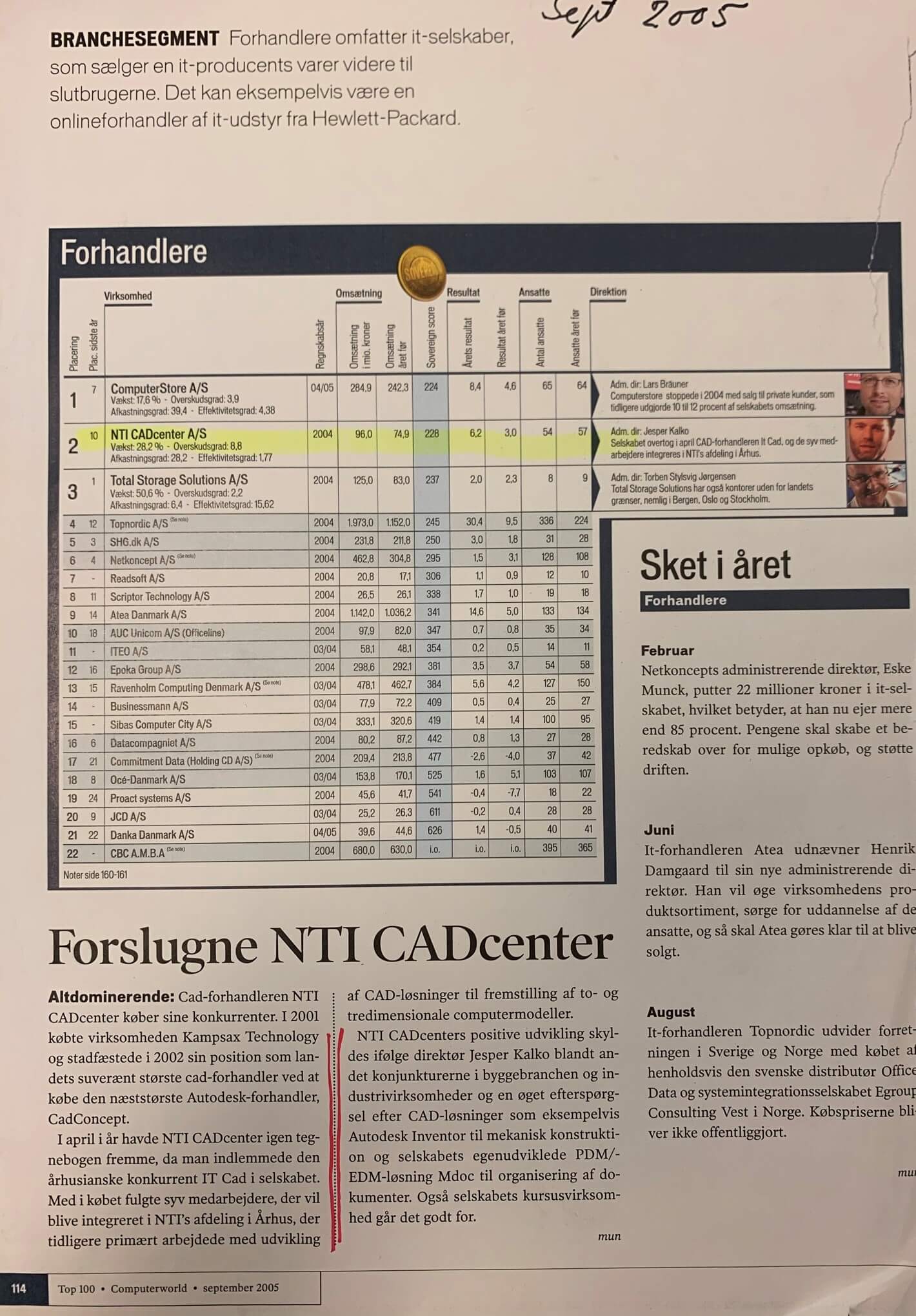 Initiativerne har en positiv effekt. Og en afdeling i Aalborg kommer også til. I midten af 00’erne kårer Computerworld NTI til den absolutte top af danske virksomheder, som sælger IT-løsninger. Succesen tilskrives konjunkturerne i byggebranchen og industrivirksomheder og en øget efterspørgsel efter CAD-løsninger i kombination med vores egenudviklede produkter og konsulentydelser.