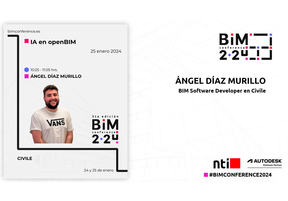 Danos tus datos y podrás acceder a la grabación de la ponencia IA en openBIM que realizó Ángel Díaz Murillo en la BIM Conference 2024.