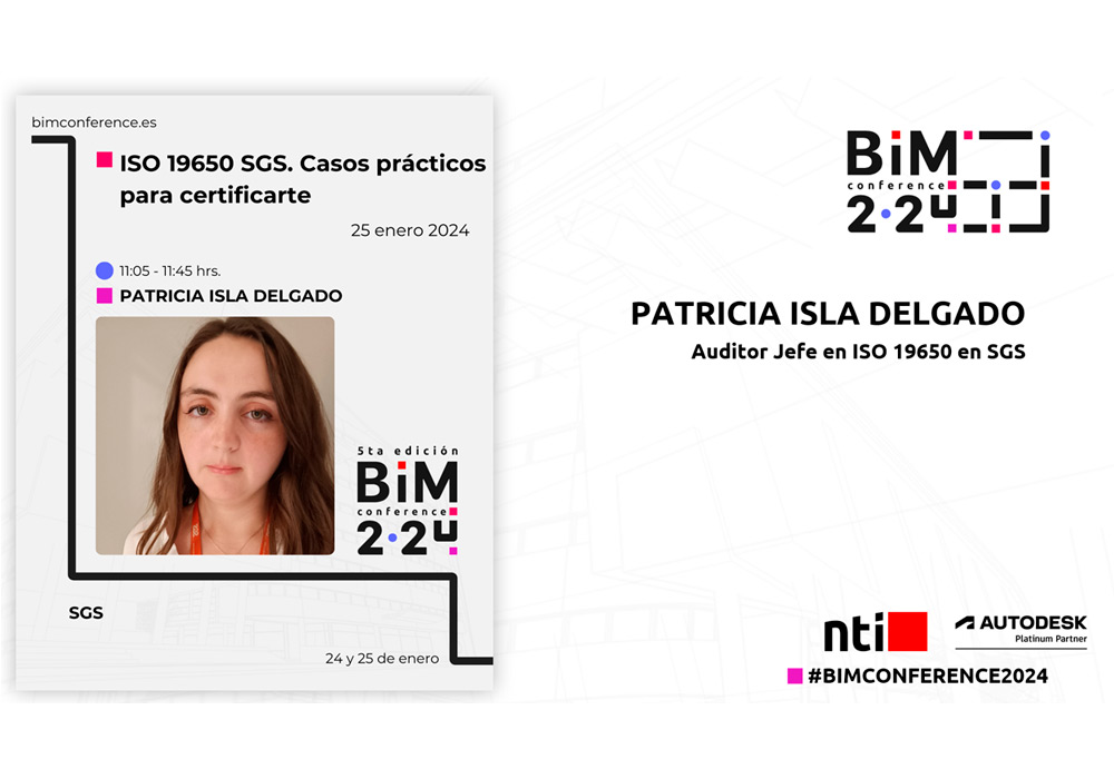 Danos tus datos y podrás acceder a la grabación de la ponencia ISO 19650 SGS. Casos prácticos para certificarte que realizó Patricia Isla Delgado en la BIM Conference 2024.