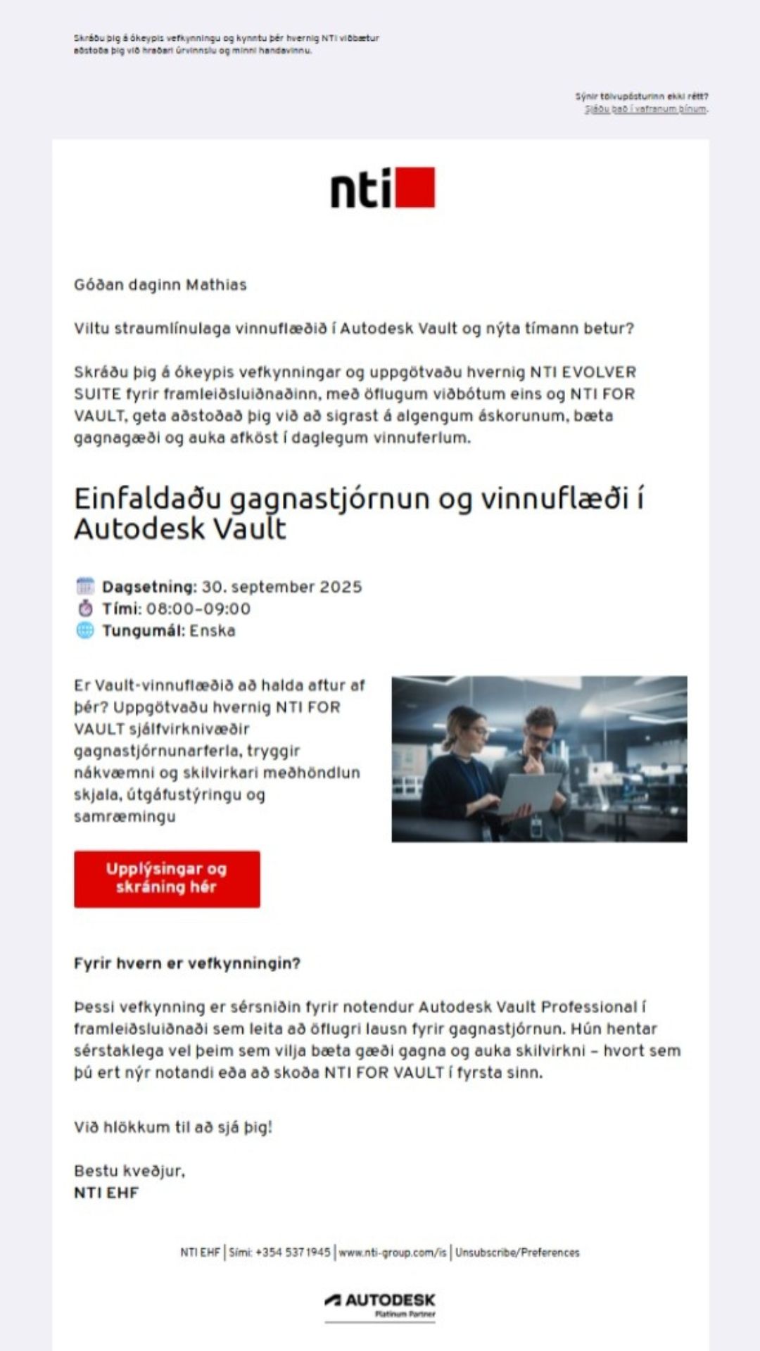 Skráðu þig og fáðu NTI fréttabréfið þar sem þú færð beinar fréttir um: