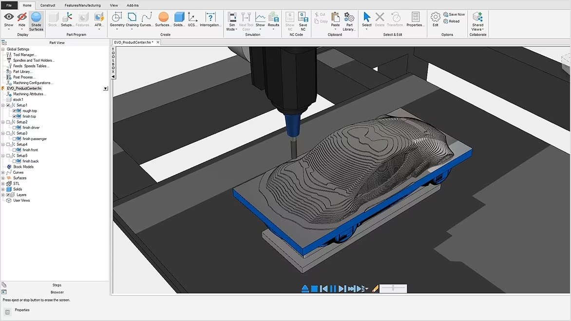 FeatureCAM è il software CAM utilizzato per automatizzare la generazione del codice di lavorazione CNC. Viene generalmente utilizzato per programmare frese CNC, nonché torni, tornio-fresatrici, macchine multitasking e per l'elettroerosione a filo a 3 e 5 assi.