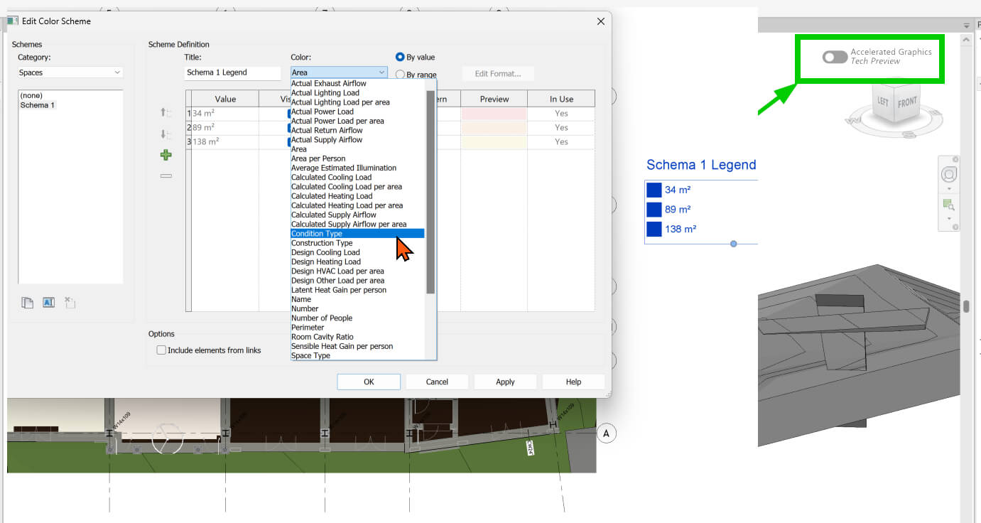 Revit 2026 introduceert Accelerated Graphics om de grafische weergave en navigatie binnen (grote) modellen te verbeteren. Dit nieuwe graphics framework zorgt voor een snellere visualisatie en efficiëntere interactie met complexe 2D- en 3D-views. Dankzij de verbeterde hardwareacceleratie heb je, met één druk op de knop, een merkbaar soepelere en beter reagerende model- of tekeningnavigatie.