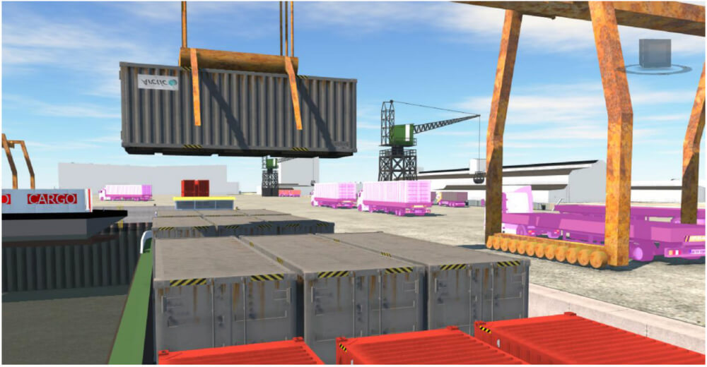 Een haven komt pas tot leven met de juiste context. We kleden het model aan met gedetailleerde 3D-objecten. Door de toevoeging zoals fenders, overslagkranen, containers, noodtrappen, binnenvaartschepen en vrachtverkeer wordt de ruimtelijke impact voor stakeholders direct voelbaar.