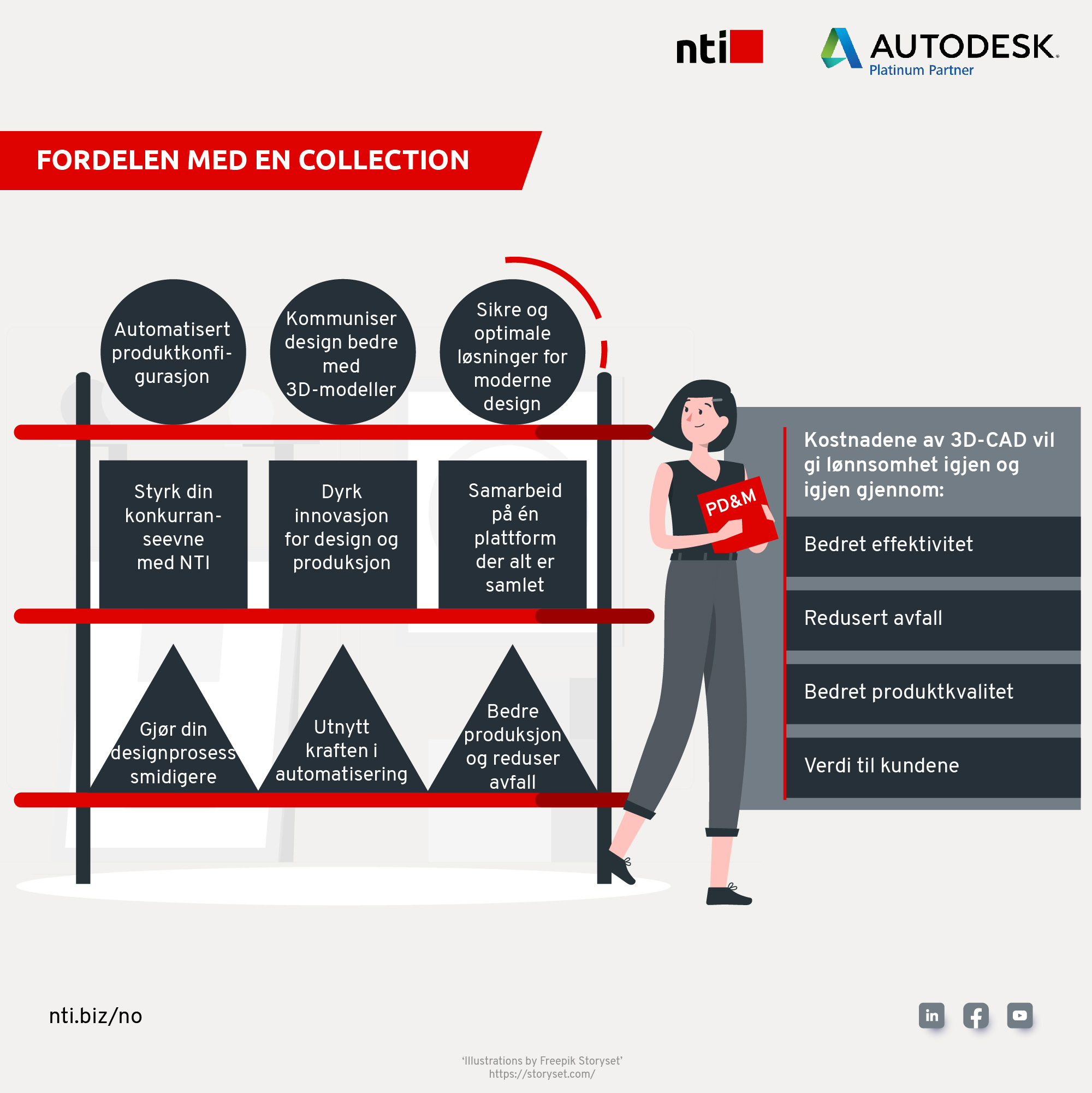 - NTI er en av de største Autodesk-partnerne i Europa (Platinium partner) og tilbyr samtlige produkter i Autodesk-porteføljen