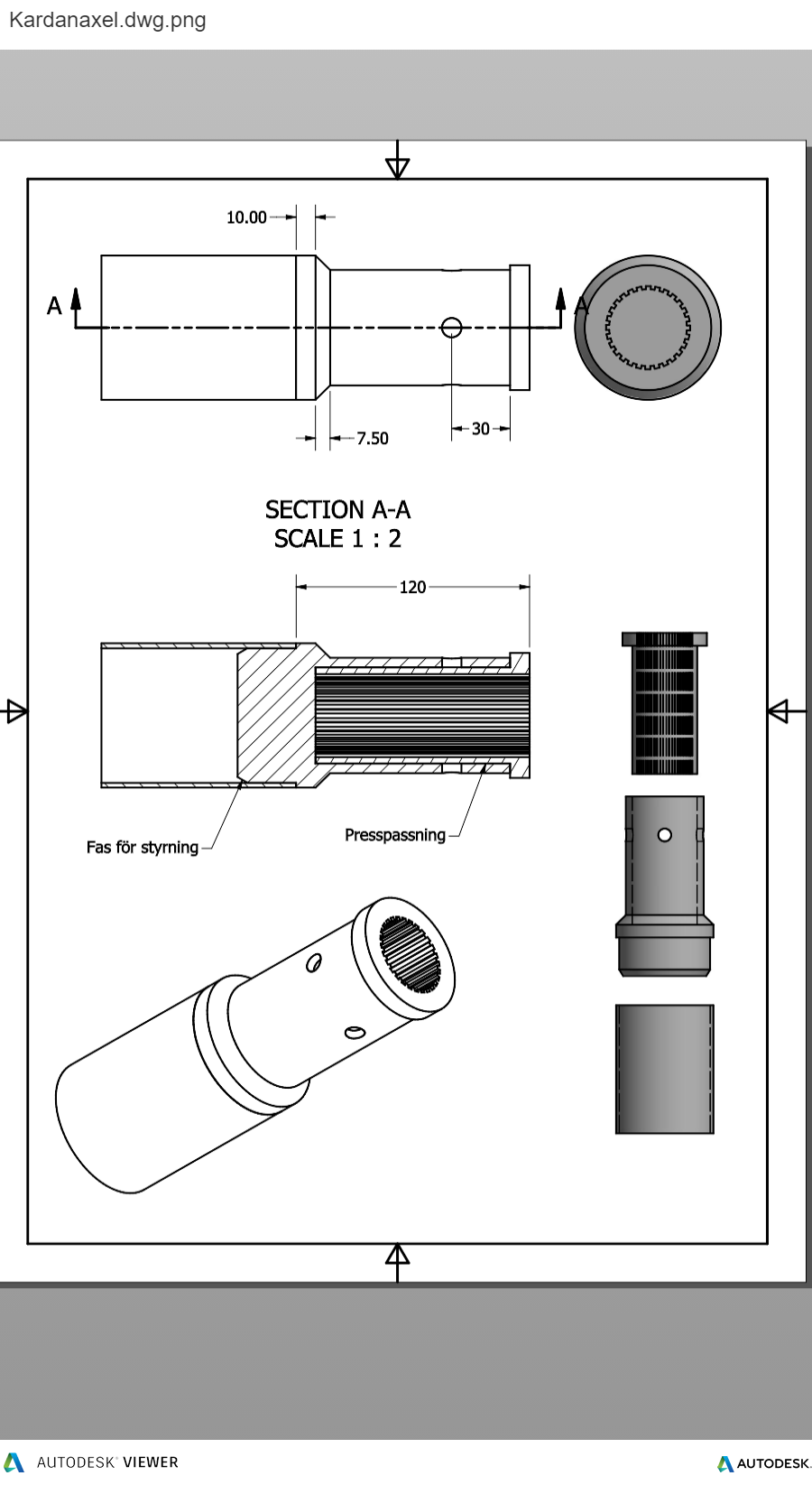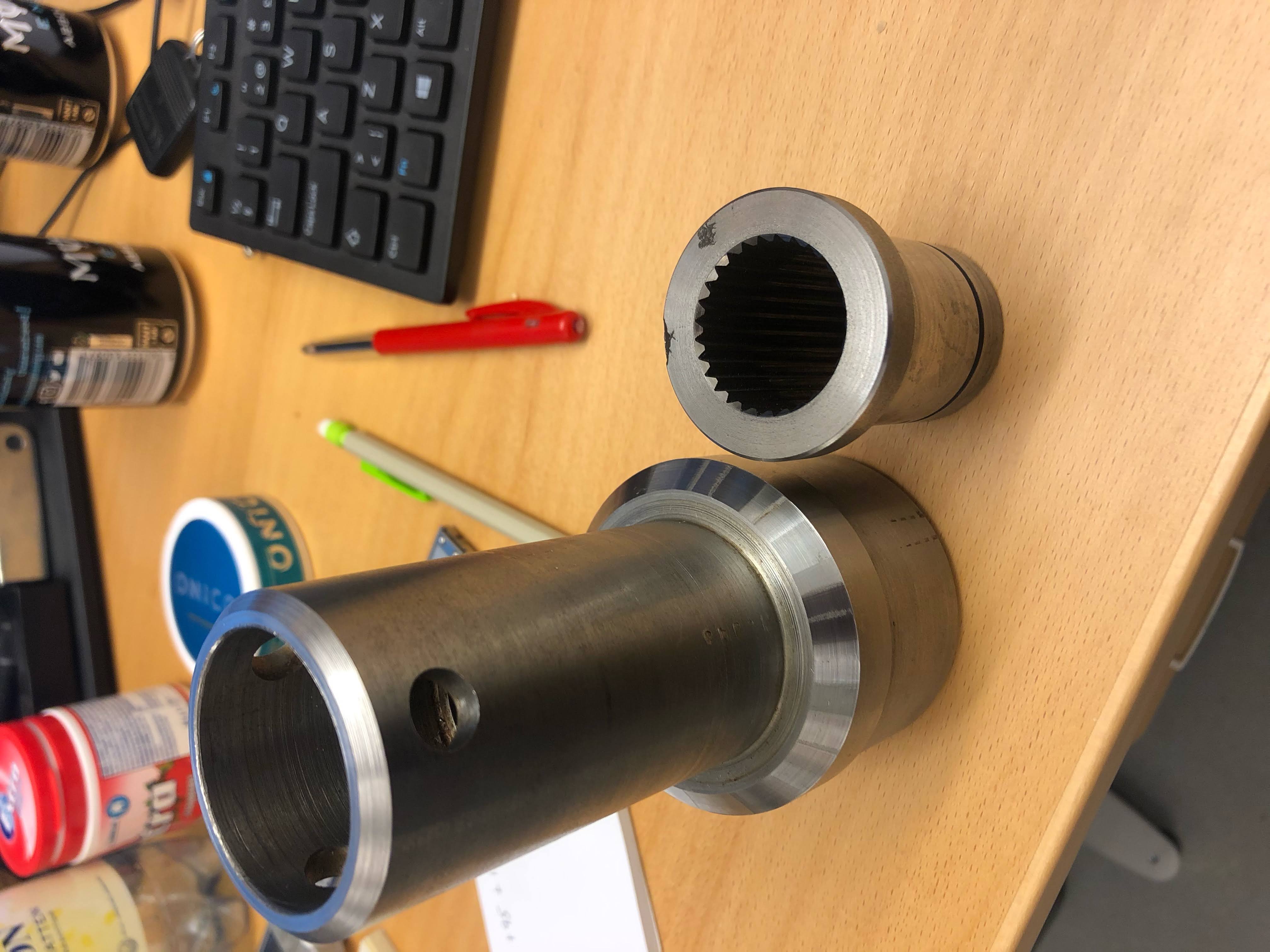 Efter en del klurande och en hel hög samtal till vänner och bekanta så lyckades vi hitta en gammal växellåda som hade just samma splines som denna, och då fanns det en möjlighet genom att svarva och bygga en adapter att få ihop detta. Det hade garanterat gått utan ett CAD program också, MEN, vad mycket enklare det vart när man bara enkelt kunde måtta upp den befintliga axeln och utifrån de bitar man hade kunna modellera upp en adapter och ta fram tillverkningsritningar, bilder och allt som tillverkaren behövde för att kunna göra ett bra jobb.