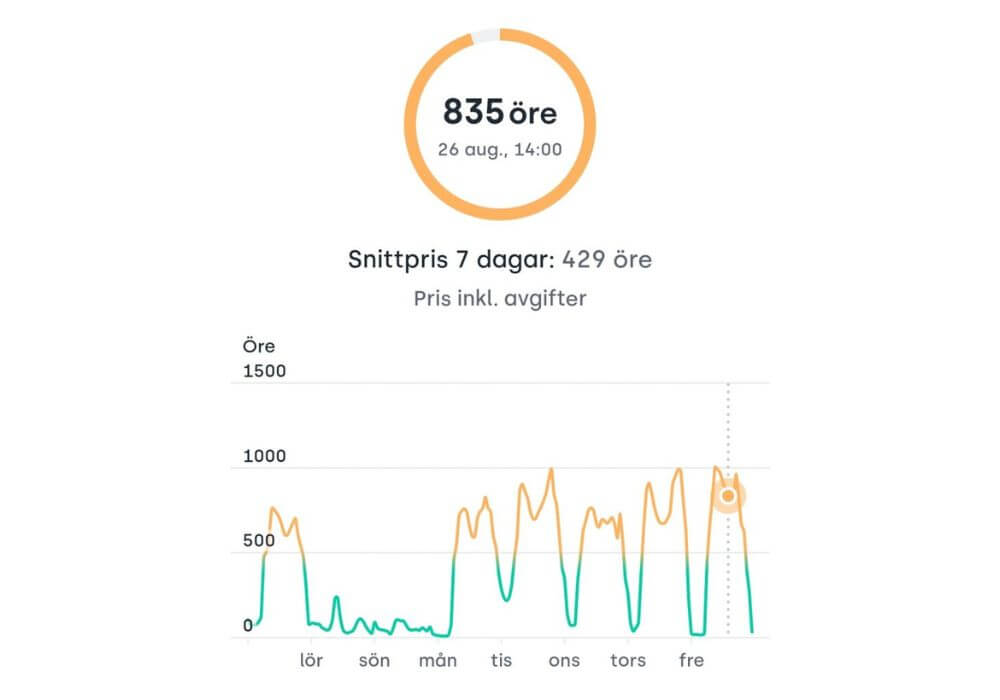 Trots varmt väder och många solpanelsanläggningar som levererar full kapacitet har elpriset per kWh i augusti 2022 varit mellan 10 öre och 10 kr. En vanlig villa förbrukar i genomsnitt 15 000 - 20 000kWh per år vilket gör att potentialen att spara pengar är stor om du äger en bil med V2G-teknik, så länge elpriset håller nuvarande nivåer. Denna teknik kommer ändra hela elmarknaden när den blir kommersiellt tillgänglig.