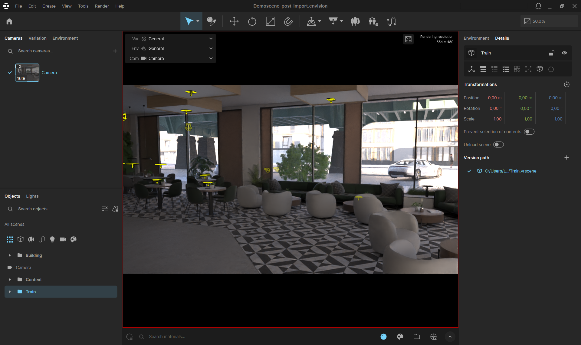 Envision är byggt för att smidigt passa in i ditt befintliga arbetsflöde. Det stödjer flera vanliga filformat som .vrscene, .fbx och .obj och fungerar med verktyg som Revit, Rhino och SketchUp – vilket gör övergången till visualisering snabb och enkel. -