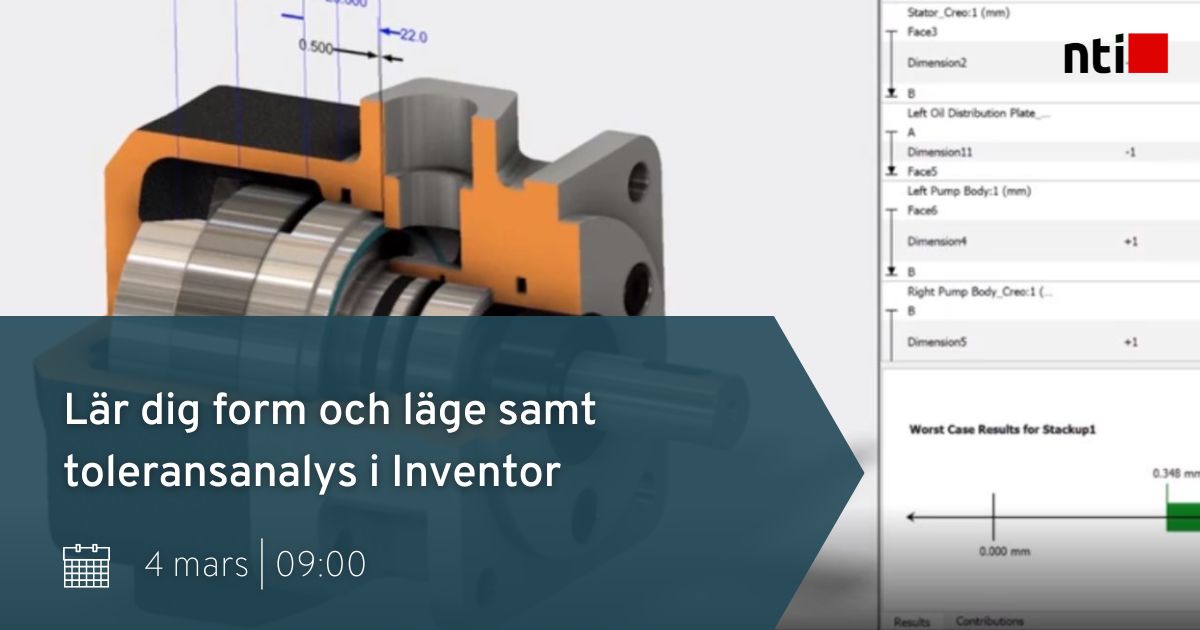 I detta webinar visar vi hur du kan balansera kostnad och kvalitet genom användning av form- och lägestoleranser samt toleransanalys i Inventor. Vi gick även igenom hur du kan specificera produktens geometriska krav med hjälp av form och lägestoleranser, både på ritningen och direkt i 3D-modellen enligt MBD-konceptet. Dessutom tittade vi på grunderna inom toleransanalys och hur dina toleranser kan optimeras för att säkra produktkvalitet och samtidigt sänka tillverkningskostnaden. Vi visade även två kraftfulla moduler som kan hjälpa dig med detta – Model Based Definition och Inventor Tolerance Analysis.