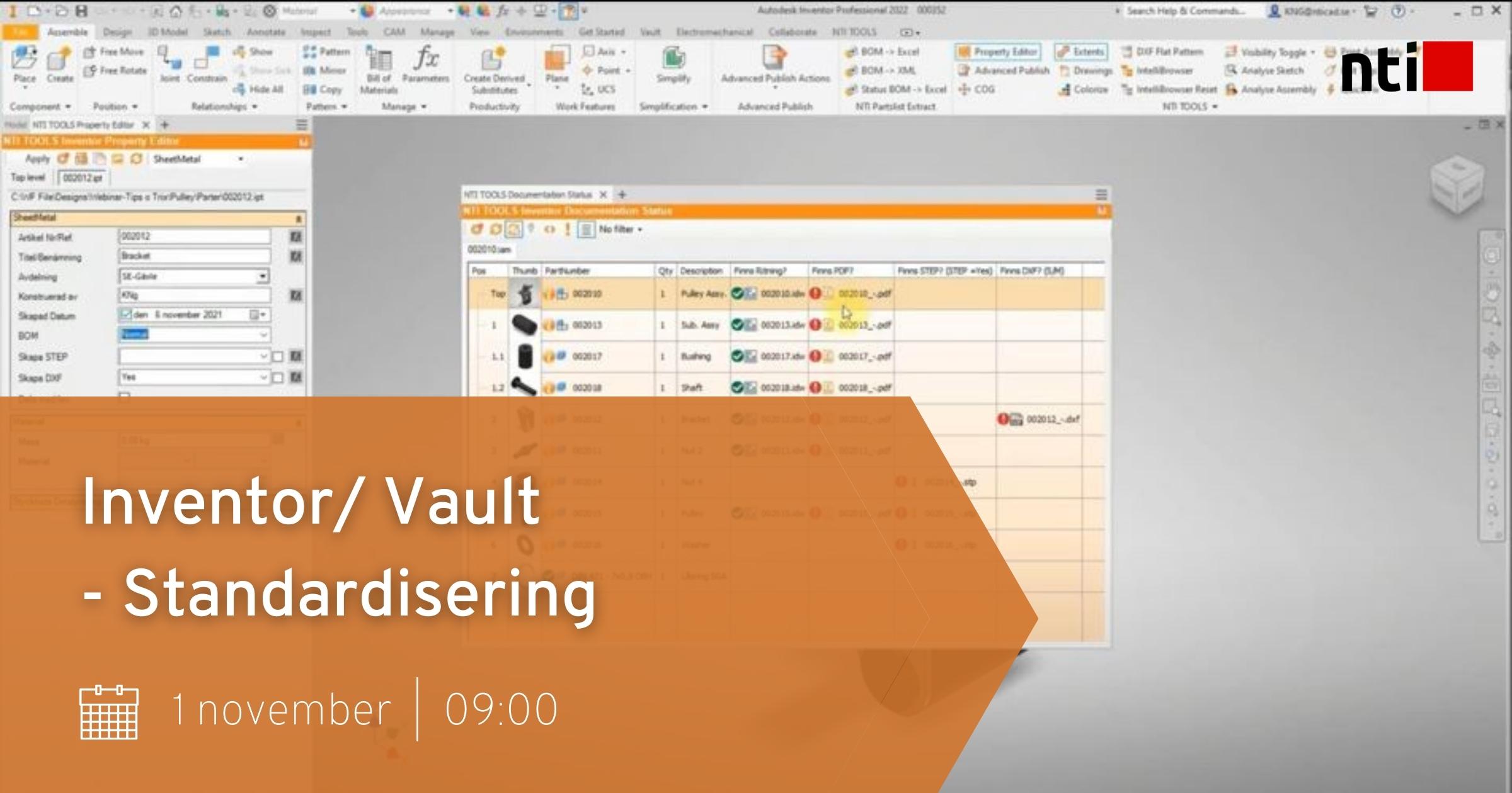 Detta webinar syftar till att inspirera och ge dig som arbetar i Inventor och Vault några idéer om hur vi kan göra ditt arbete lite enklare och lite roligare. Vi kommer gå igenom följande tre områden: