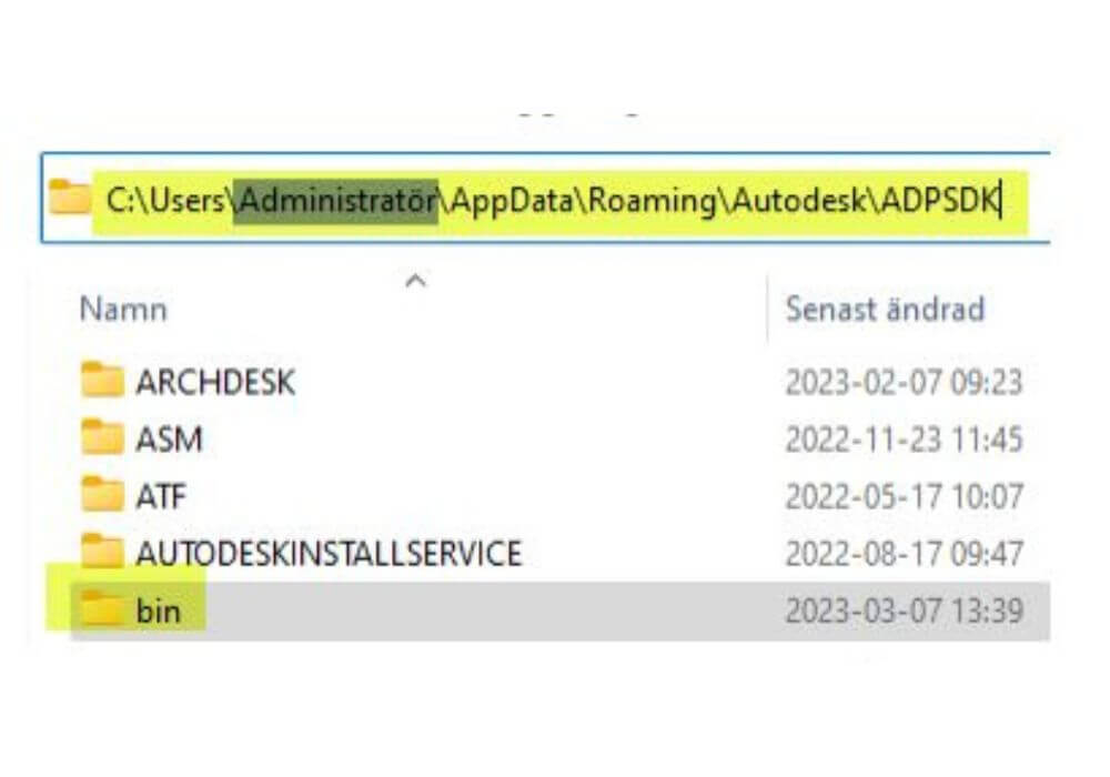 sökvägen: C:\Users\Administratör\AppData\Roaming\Autodesk\ADPSDK där